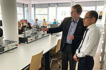 Other members from HTWK Leipzig also took part in the programme of the visit: Prof. Dr.-Ing. Michael Einhaus, Dean of Studies for the Master's program in Information and Communication Technology at the Faculty of Digital Transformation, and Silke Mühl representing the International Office. During a short tour through the Faculty's laboratories, Mr. Nakada received a good insight into various areas of activity and research, e.g. the laboratory for electromagnetic compatibility, the basic laboratory for electrical engineering and the research field of the HTWK Robots Team. Both sides look forward to further developing the young cooperation and await further research projects and academic exchange formats in the future.