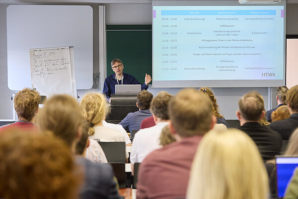 Nach der Begrüßung und Einführung durch den Rektor der HTWK Leipzig, Prof. Dr.-Ing. Jean-Alexander Müller sowie den Leiter des WeL25, Prof. Dr. Andreas Thor, standen den ganzen Tag über drei parallellaufende Sessions zur Auswahl.