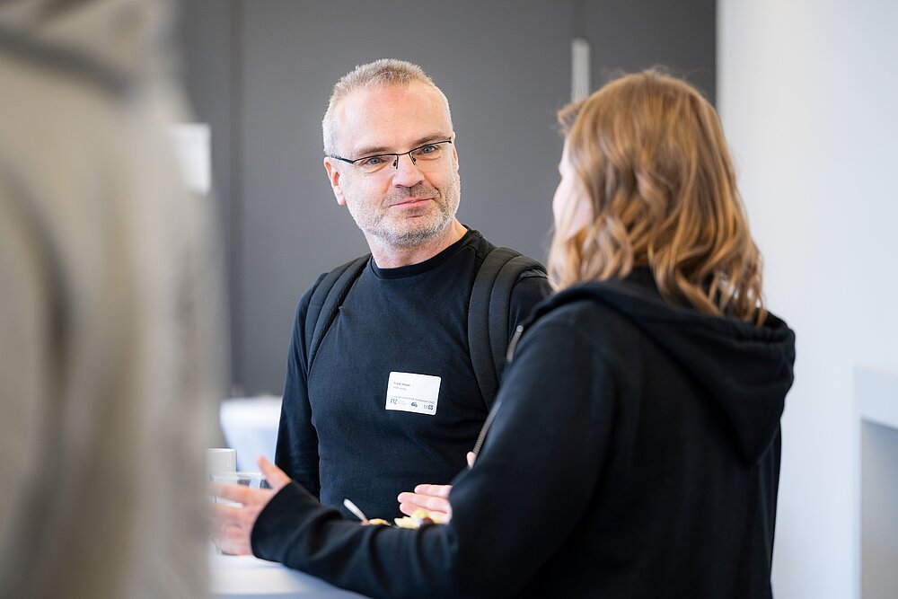 In Session 1 ging es darum, Bodenfunktionen zu verstehen, zu erhalten und zu verbessern. Dabei wurden Boden- und hydromechanische Phänomene, die hierdurch beeinflusst werden, thematisiert und zugleich aufgezeigt, wie die Geotechnik diesen begegnet. Dazu erläuterte eingangs Prof. Dietmar Adam von der Technischen Universität Wien als Keynote-Speaker, wie sich Temperatur- und Niederschlagsereignisse auf die mechanischen und hydraulischen Eigenschaften von Böden auswirken. Seitens des Instituts für Geotechnik hielten die HTWK-Forschenden Prof. Ralf Thiele, Dr. Alexander Knut und Lorenz Spillecke einen Vortrag über Auswirkungen zyklischer Befeuchtung und Trocknung auf das Schrumpfungsverhalten und die hydraulische Leitfähigkeit von Bodenproben.