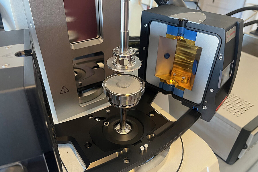Die Pulverscherzelle, ein Analyse-Gerät zur Bestimmung von Fließeigenschaften, ist Anfang März 2025 angekommen und in Betrieb genommen worden: „Mit dem Präzisionsrheometer von Anton Paar analysieren wir den Fluss von Pulvermaterialien in einer kontrollierten Temperatur- und Feuchteumgebung, um die Geschwindigkeit und Präzision der Prozesse weiter zu optimieren“, erklärt Reinhold.