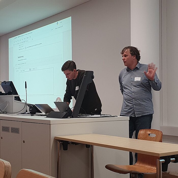 Dabei zeigten die Vorträge und Diskussionsrunden, dass die Digitalisierung der Lehre bereits in vielen Hochschulen und Universitäten erfolgreich vorangetrieben wird. Zum Beispiel stellte Reinhold Hübl (DHBW Mannheim) in seinem Vortrag dar, wie digitale Unterstützung von Tutorien langfristig in den Studienalltag integriert werden können. Hübls Ansatz veranschaulichte, wie digitale Tools zur Verbesserung der Interaktion zwischen Studierenden und Tutor beitragen können.