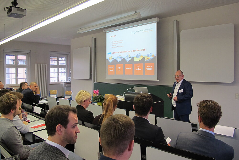 In ihrem Pitch berichteten Personalverantwortliche, Direktoren und Projektleiter von unter anderem bauplanung plauen gmbh, Brunel GmbH und CG GRUPPE AG, Eiffage Rail und GP Papenburg Hochbau GmbH, welche Aufgaben und Projekte ihre Unternehmen derzeit zu bewältigen haben und welche Einstiegsmöglichkeiten für junge Leute existieren. Anschließend diskutierten sie mit den Studentinnen und Studenten darüber, was Firmen von Bewerbern und zukünftigen Mitarbeitern erwarten. Köster GmbH, Ludwig Pfeiffer Hoch- und Tiefbau GmbH & Co. KG sowie Schweerbau GmbH & Co. KG waren ebenfalls vertreten und ließen in ihren Bewerbungsprozess blicken. Dabei kamen auch Fragen dazu auf, welchen Stellenwert ein Anschreiben gegenüber einem Lebenslauf besitzt, ob bzw. wie ein Interessent die eigenen Gehaltsvorstellungen ansprechen sollte und welche Studienabschlüsse von zukünftigen Arbeitgebern gewünscht werden.